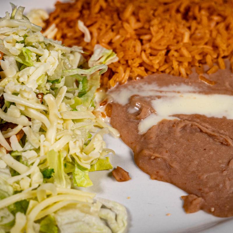 Includes rice, beans, tortillas, lettuce, pico, sour cream, and guacamole.