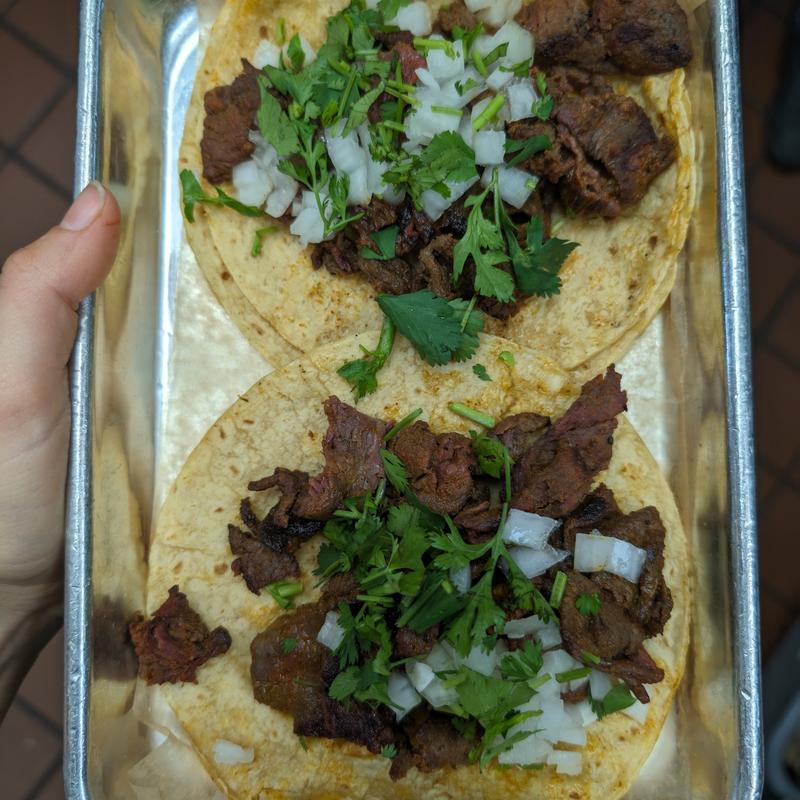 Handmade tortillas are served on the weekends. Corn, Flour or Hard Shell, with your choice of meat, topped with diced onions, and cilantro.